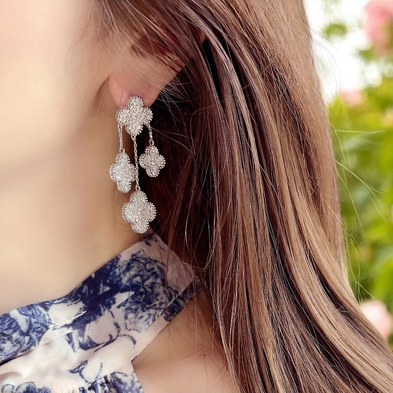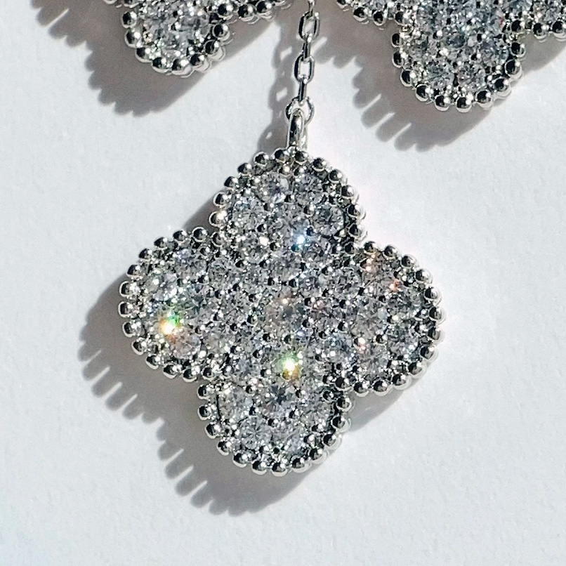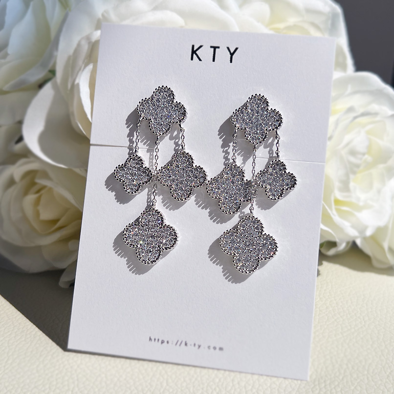 幸運のシンボル「四つ葉のクローバー」。キュービックジルコニアストーンの輝くクローバーモチーフは華やかさをプラスオンしてくれる、4Clover Pendant motif ピアス。全方位にストーンを敷き詰め、どの角度から見てもゴージャスで煌びやかな印象を与えてくれます。メッキはシルバーカラーでジュエリー感たっぷり。シーズンレスで着用でき、場面も選ばないので贈り物にも最適です。高品質のメッキで、耐久性に優れ変色しにくく、長くご愛用いただけます。