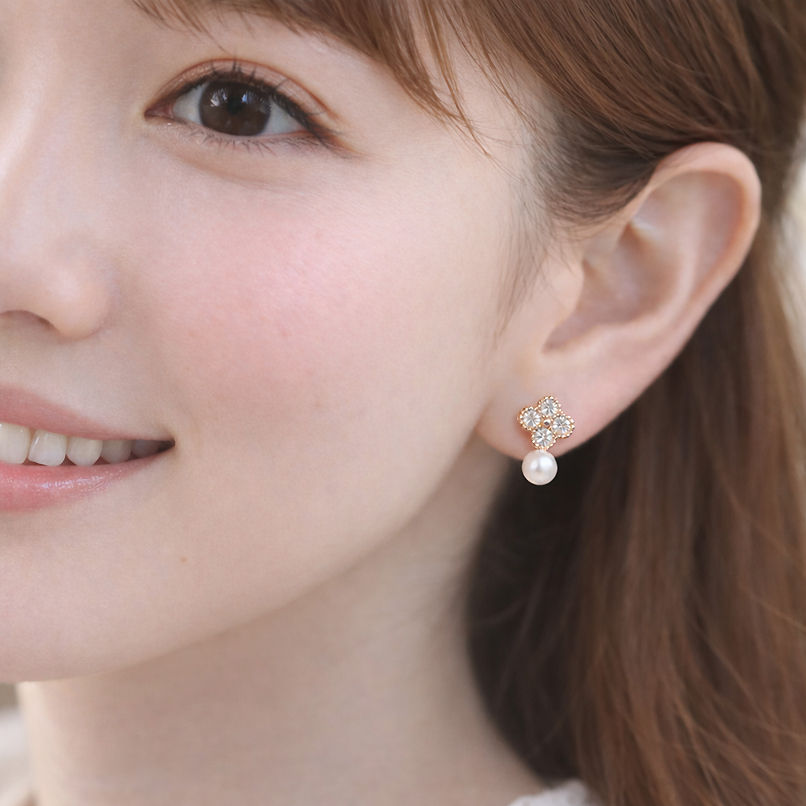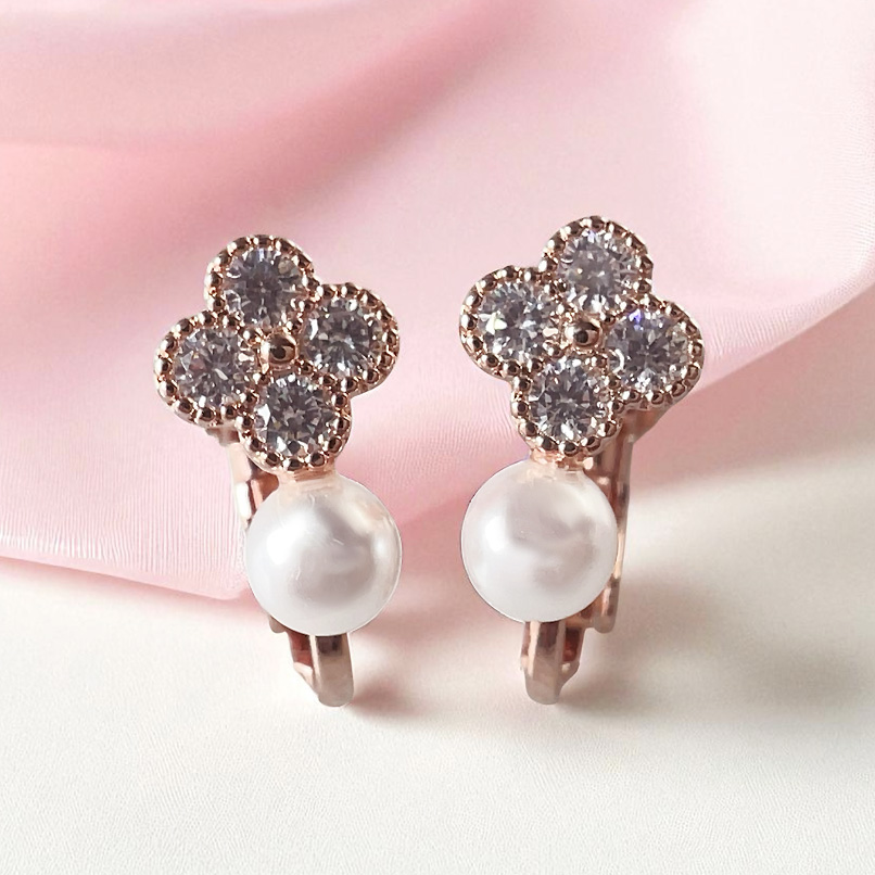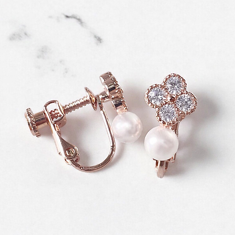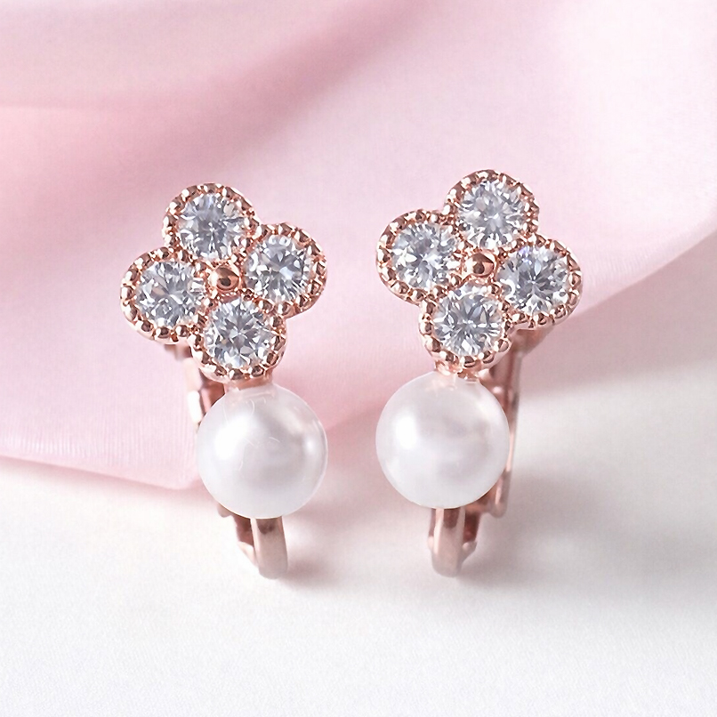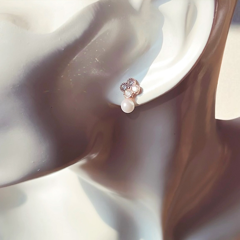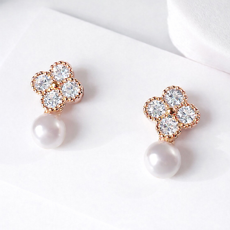 上品なミニクローバーモチーフにパールをあしらえた、愛らしく輝きを与えてくれる、Mini Pearl Clover ピアス/イヤリング【ニッケルフリー】。