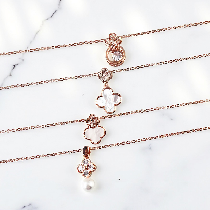 上品なミニクローバーモチーフにパールをあしらえた、愛らしく輝きを与えてくれる、Mini Pearl Clover ネックレス【ニッケルフリー】。