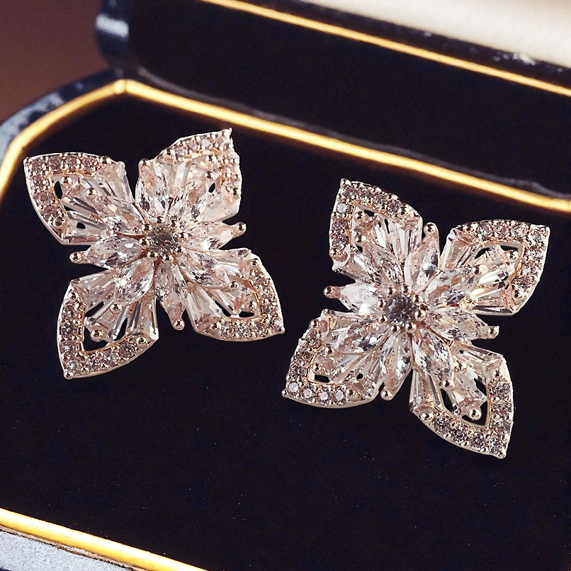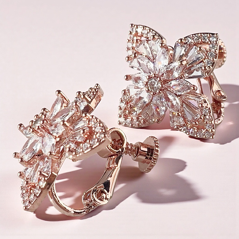 優美に煌めくジルコニアストーンのお花モチーフが印象的なJewel CZ-Flower Pearl ピアス/イヤリング。